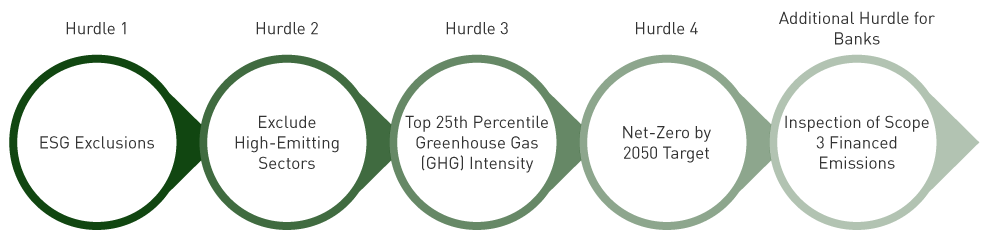 - Must have stated net zero by 2050 emissions targets covering at least Scope 1 and Scope 2 GHG or already be achieving net zero